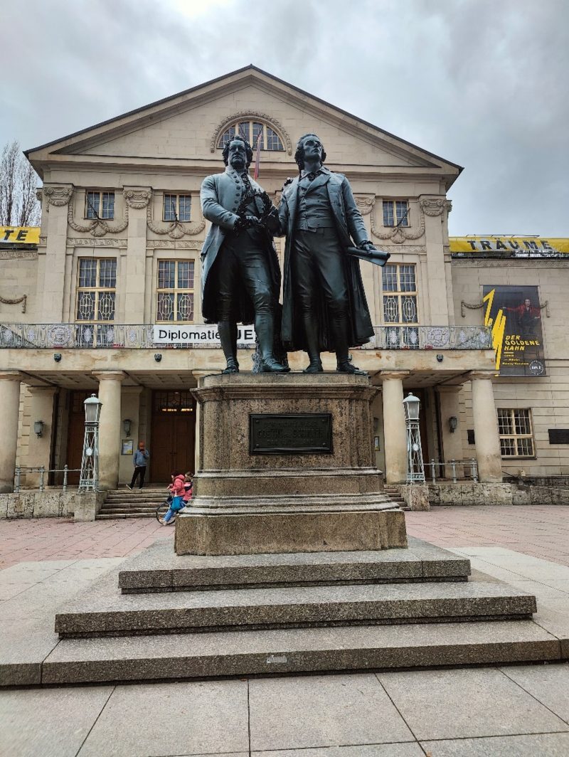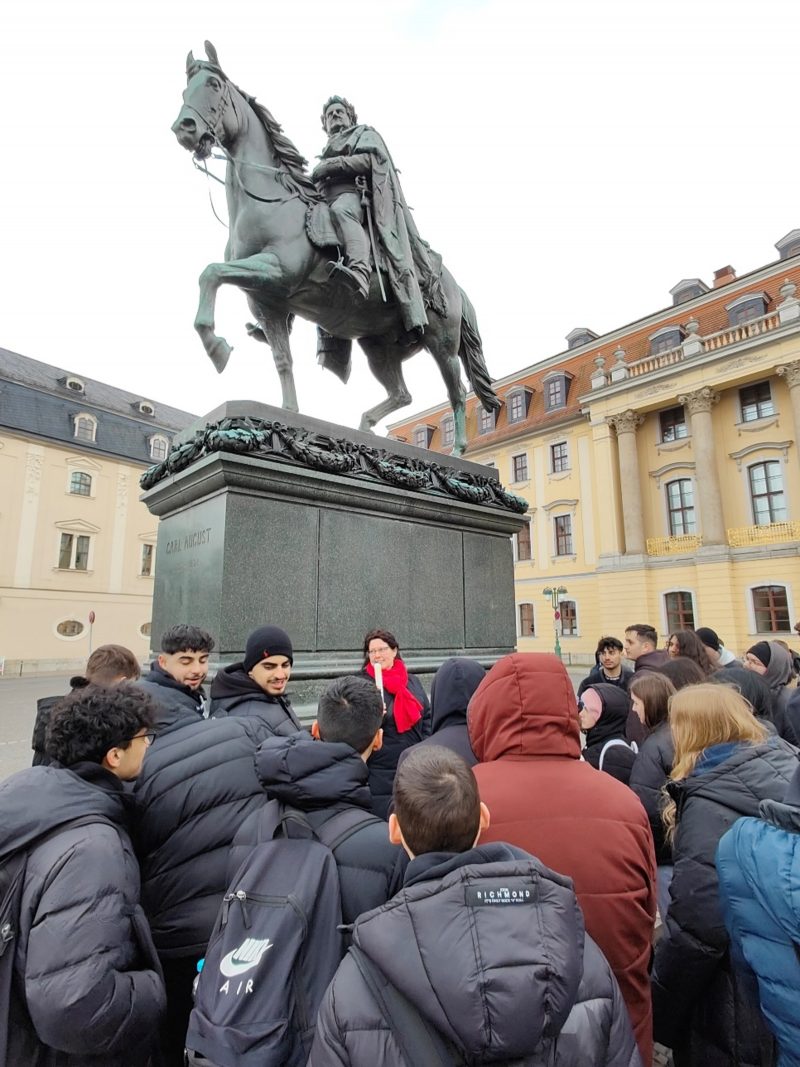 Am Dienstag, dem 07.03.2023, besuchten die Klassen 10Ga, 10Ra und 10 Rb unter Begleitung der Lehrkräfte Raphael Kästel, Katrin Finkelmeyer, Dominique Braun und Cornelia Barthel das ehemalige Konzentrationslager Buchenwald bei Weimar in Thüringen. Heute bezeichnet man es als Gedenkstätte, da man in Buchenwald an das Geschehene erinnern und der Opfer gedenken möchte. Zur Vorbereitung schauten wird uns den Film „Nackt unter Wölfen“ an, der in Buchenwald spielt und auf wahren Ereignissen beruht. Der Film zeigte auch historische Aufnahmen aus dem Konzentrationslager und vermittelte uns einen Überblick über die Geschichte des Ortes. Im Konzentrationslager angekommen, gingen wir durch das Tor zum Lager. Herr Kästel erklärte uns das Motto, welches am Tor des Lagers stand: „Jedem das seine“. Dies sollte die Gefangenen demütigen. In einem anderen Konzentrationslager gibt es eine Toraufschrift mit „Arbeit macht frei“, dies hat dieselbe Bedeutung. Rechts vom Torhaus befand sich eine Konstruktion, um zu sehen, wie das Lager früher aussah. Dort wurden uns die Geschichten der einzelnen Gebäude erläutert. Während der Führung im Konzentrationslager Buchungswald erklärte und zeigte uns Herr Kästel, dass das System der Konzentrationslager ein zentrales Instrument der NS-Terrorherrschaft war. Die Nationalsozialisten begannen politische Gegner ohne Gerichtsurteil in Konzentrationslagern zu inhaftieren, zu foltern und zu ermorden. Später wurden die Lager nicht nur zur Ausschaltung politischer Gegner genutzt, sondern auch zur Durchsetzung der NS-Rassenpolitik. Juden, Sinti und Roma, Menschen ohne Wohnsitz und Arbeit, Menschen mit Behinderung und Homosexuelle wurden isoliert und ermordet. Im Laufe der Führung wurden wir zu einer Nachbildung der Genickschussanlage geführt, in der viele sowjetische Soldaten getötet wurden. Danach wurden wir an einen sehr traurigen Ort gebracht, das Krematorium. Das ist der Ort, an dem die Getöteten verbrannt wurden. Wir alle sind in eine traurige Stille verfallen. Ein weiterer besonderer Ort im Konzentrationslager war der Appellplatz, an dem die Inhaftierten jeden Tag gezählt wurden, um sicher zu gehen, dass keiner geflohen war. Nach der Führung sind wir mit dem Bus nach Weimar gefahren. Dort hatten wir zuerst Freizeit und konnten uns eigenständig in kleinen Gruppen umsehen und das Zentrum der Stadt Weimar erkunden. Nach der zweistündigen Pause hat uns Frau Finkelmeyer die Stadt gezeigt. Wir besuchten das Gartenhaus von Goethe, das Haus am Frauenplan, das Stadthaus von Schiller, die Musik-Hochschule Franz Liszt und standen vor dem berühmten Denkmal vor dem Weimarer Nationaltheater. Ebenfalls hörten wir uns die Geschichte von Herzog Karl August an, der Goethe nach Weimar an seinen Hof holte. Die vielseitigen Geschichten der Stadt, beispielweise als Wohnort Goethes und Schillers machen Weimar zu einem hochinteressanten Ort deutscher Geschichte.  Abschließend können wir sagen, dass der Tag sehr interessant und informativ war.