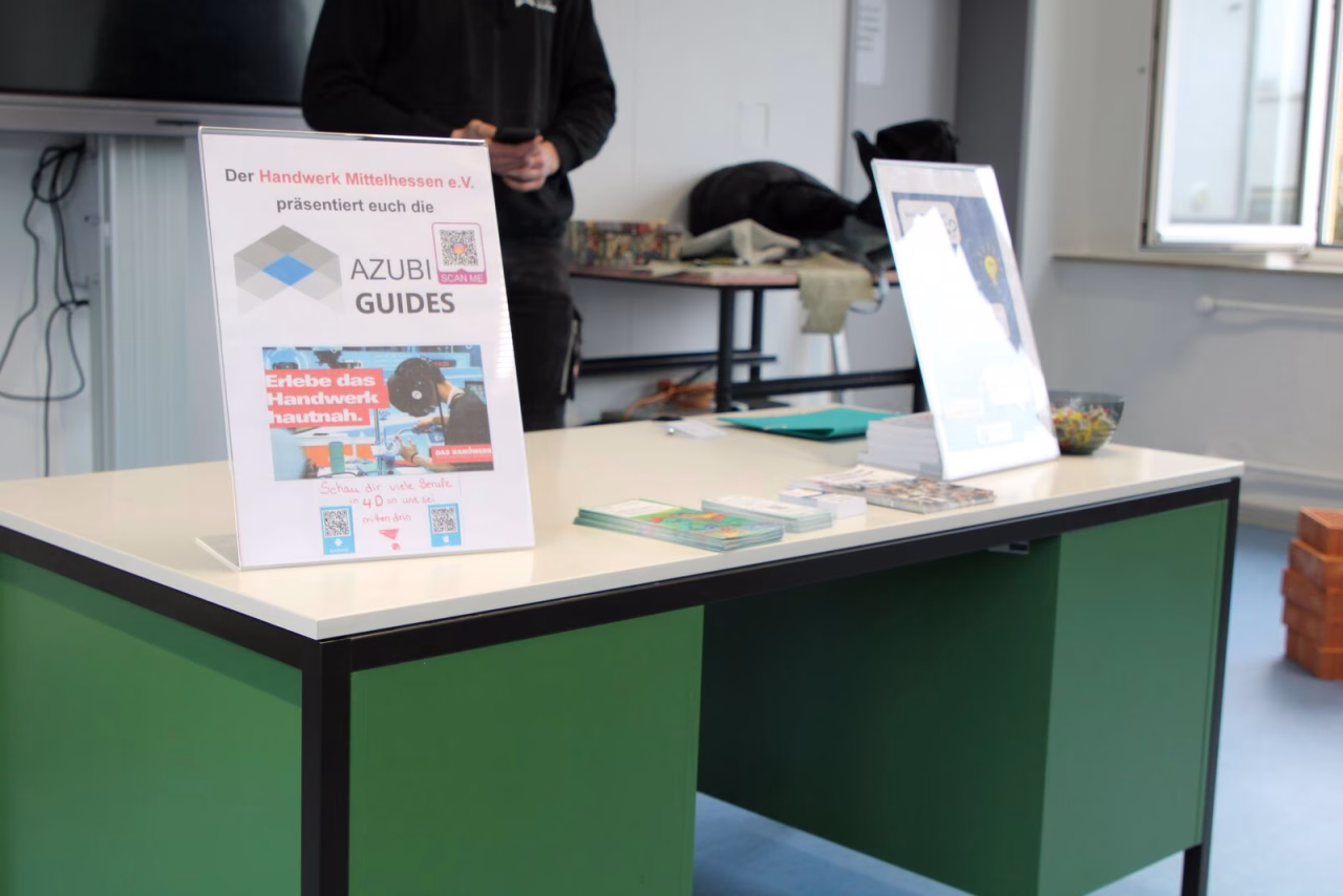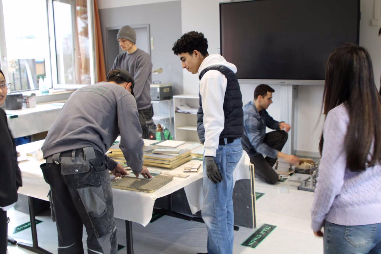Die Jugendlichen erhielten aus erster Hand Einblicke in Arbeitsalltag, Bewerbungsverfahren und Entwicklungschancen. Besonders geschätzt wurde der direkte Austausch mit Auszubildenden und Ausbilderinnen sowie Ausbildern – Fragen waren ausdrücklich erwünscht. Ein Highlight: die Mitmachangebote. Hier konnten unsere Schülerinnen und Schüler selbst aktiv werden – zum Beispiel als Fliesenlegerinnen und Fliesenleger, Maurerinnen und Maurer sowie als Raumausstatterinnen und Raumausstatter. Kleine praktische Aufgaben, viel Fingerspitzengefühl und ein echter Eindruck davon, wie sich der Beruf „anfühlt“ – das kam bei den meisten gut an und machte Lust auf mehr. Viele nutzten die Gelegenheit, um Kontakte für das kommende Betriebspraktikum zu knüpfen und sich Tipps für Bewerbungen zu holen.