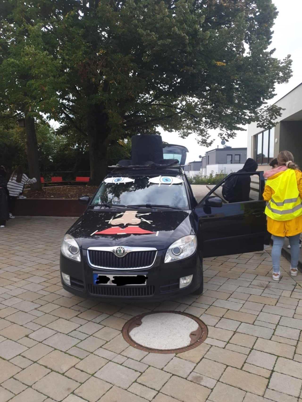 Die Prank-AG startete am Mittwoch den 02.10.2024 ihren ersten Streich. Passend zum „Gib-deinem-Auto-einen-Namen-Tag“, vergaben die Schülerinnen und Schüler der Prank-AG den Autos der Lehrkräfte neue Namen. In der 2. großen Pause konnte dann das verkleidete Auto „Gustav Vollgas“ auf dem Schulhof gesichtet werden.