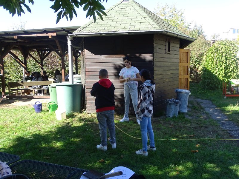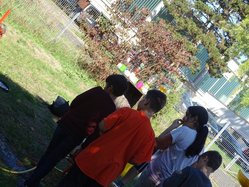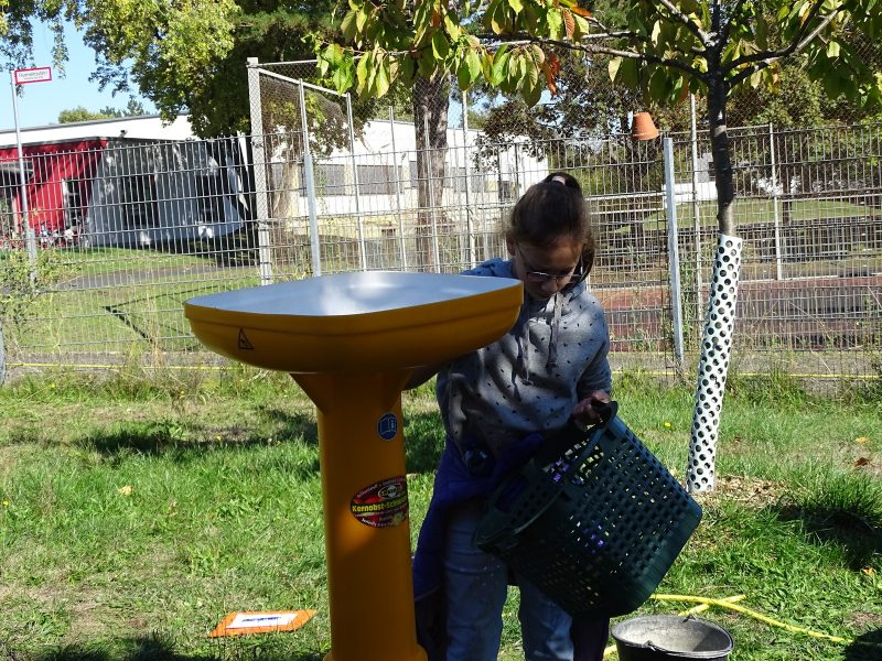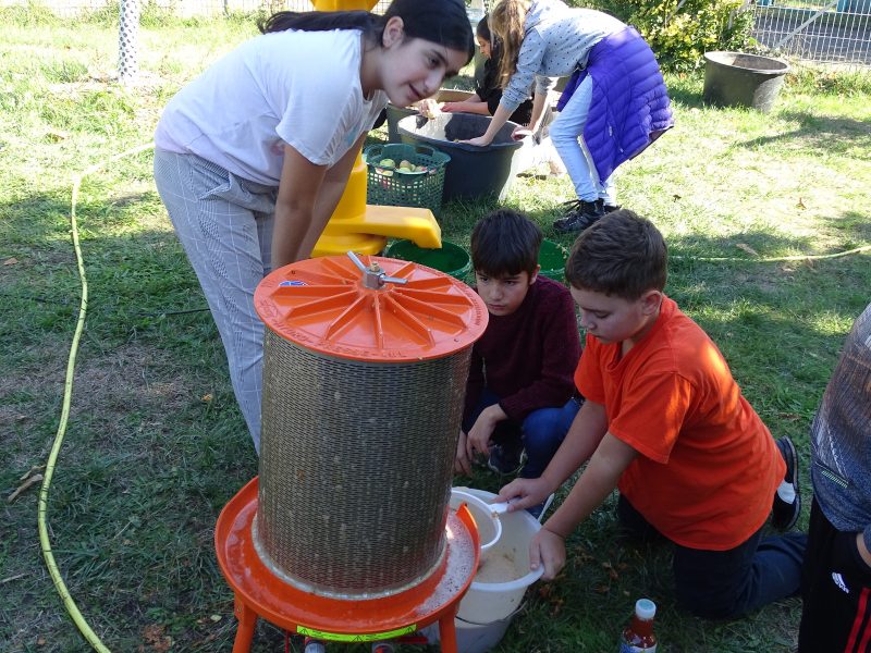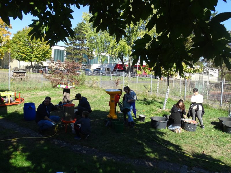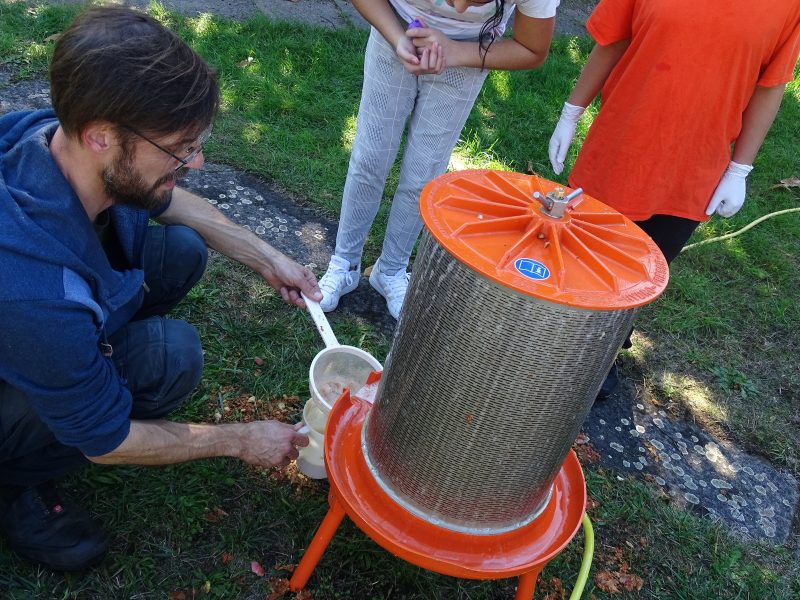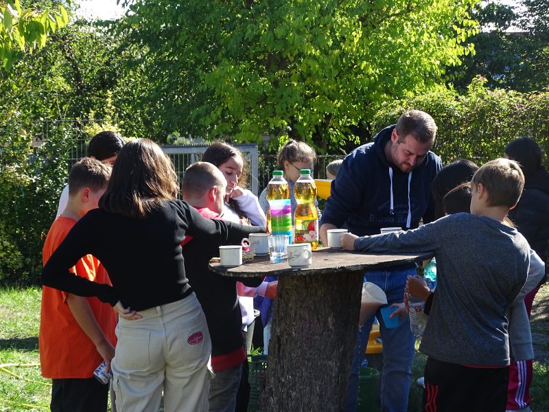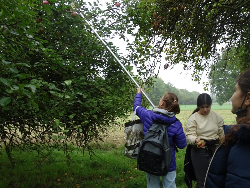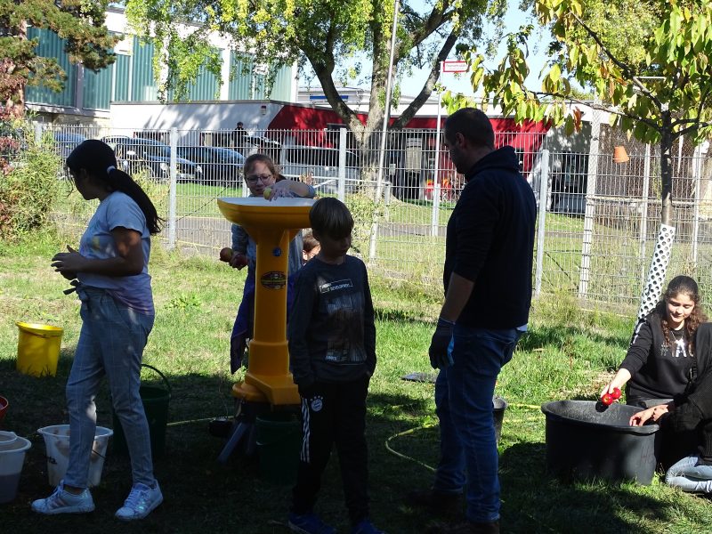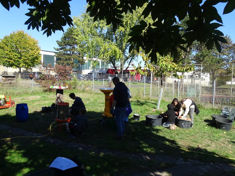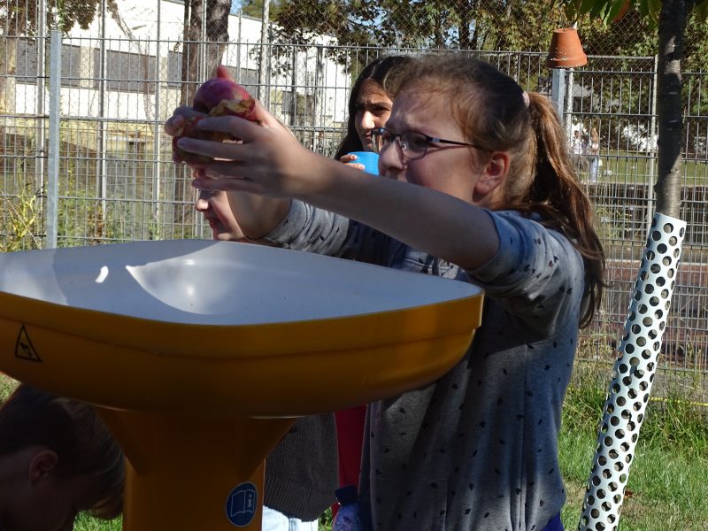 Im Rahmen des neuen Projektunterrichts des Jahrgangs 5 lernte die Gruppe der Lehrkräfte Björn Rückert und Christian Weller zunächst die Wieseck-Aue kennen. Unter fachkundiger Führung von Biologin Monika Schütz lernten die Schülerinnen und Schüler viel Wissenswertes über die heimische Flora und Fauna. In der folgenden Woche stand der Apfel im Mittelpunkt des Unterrichts. Nachdem zunächst auf einer städtischen Streuobstwiese die Äpfel geerntet wurden, erfolgte das Saftpressen im Schulgarten. Viele waren erstaunt, dass der frisch gepresste Saft viel süßer und aromatischer war als Saft aus dem Supermarkt.