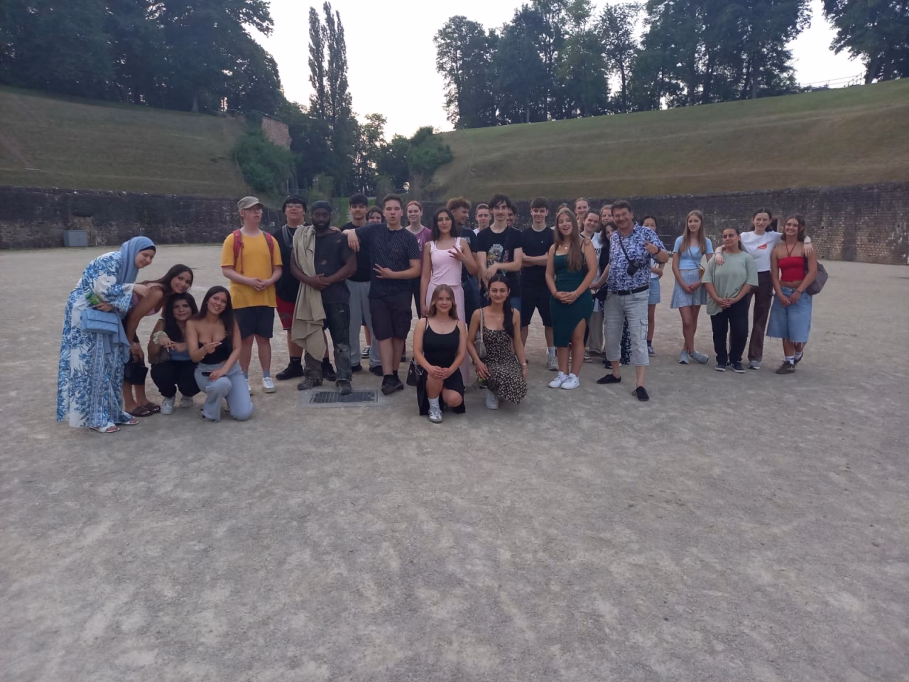 Nach dem Ausstellungsbesuch ging es weiter auf Zeitreise durch Trier: Wir staunten über die mächtige Porta Nigra, das besterhaltene Stadttor des Römischen Reichs nördlich der Alpen. Im Amphitheater konnten wir uns gut vorstellen, wie Gladiatoren hier einst kämpften und das Publikum jubelte. Auch ein Spaziergang durch die Kaiserthermen zeigte eindrucksvoll, wie fortschrittlich die Römer in Technik, Architektur und Alltagskultur waren.
