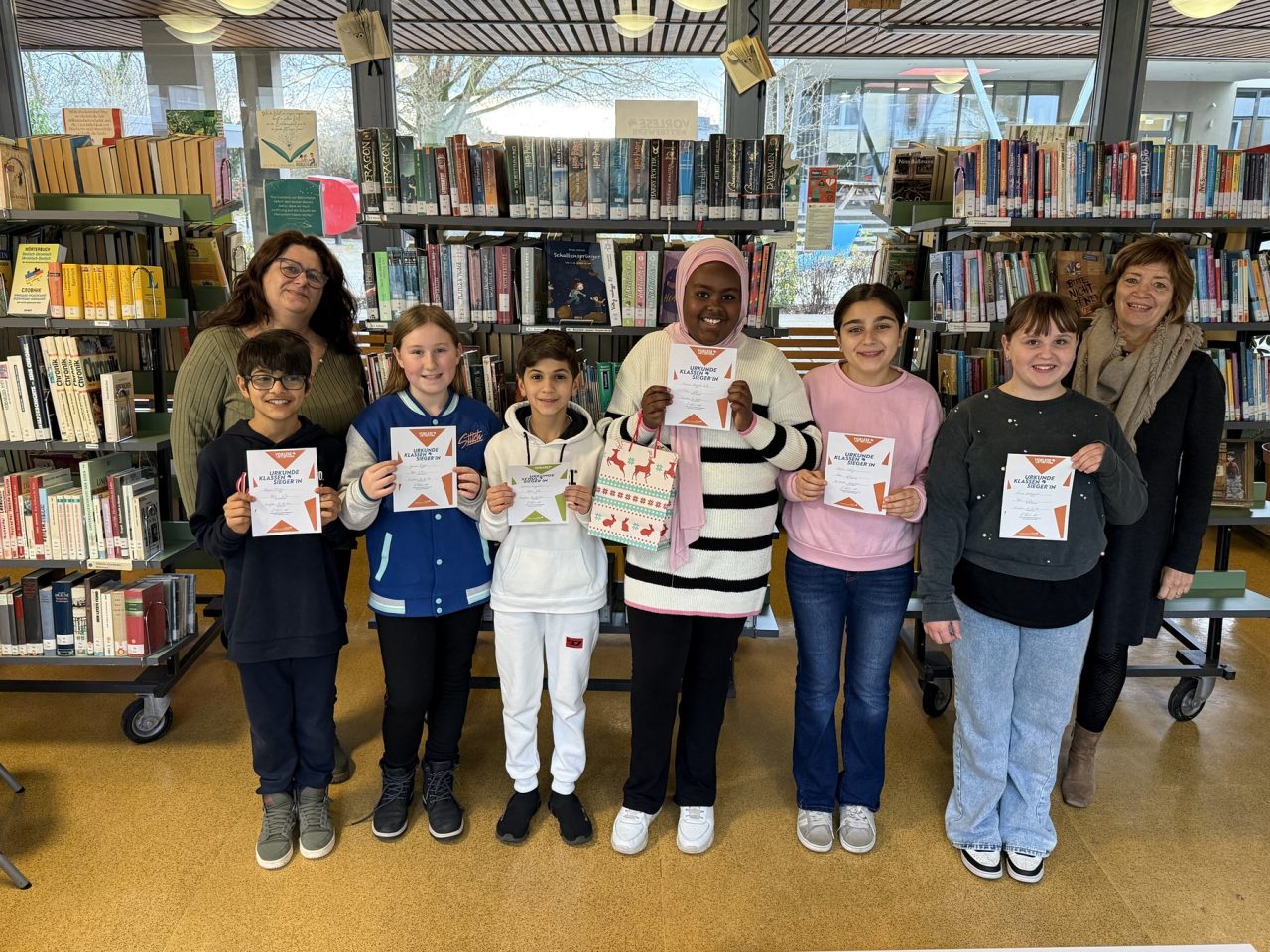 Ibrahim Alpaslan aus der 6Fa überzeugte die Jury um Anastasia Georgiadou (Fachleiterin Deutsch) und Annegret Roggenkamp (stellvertretende Schulleiterin) mit seinem Auszug aus „Drachenzähmen leicht gemacht (4). Mörderische Drachenflüche“ von Cressida Cowell. Es folgte auf Platz 2 Nasrin Ahmed (6Fa) mit „Gregs Tagebuch (18) – Kein Plan von nix“ von Jeff Kinney vor Janine Filges, die aus – „Die Schule der magischen Tiere (3) – Licht aus!“ von Margit Auer vorlas. Die drei Erstplatzierten erhielten als Belohnung ein Buchpräsent in Form ihres Wunschbuches. Ibrahim Alpaslan hat die besondere Ehre, die Farben der FES beim Stadtentscheid zu vertreten. [WEL]
